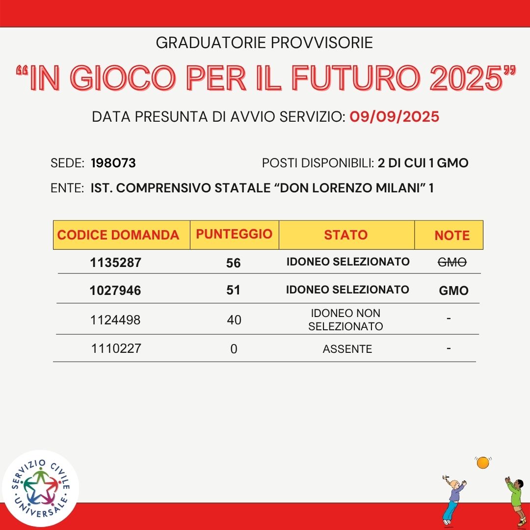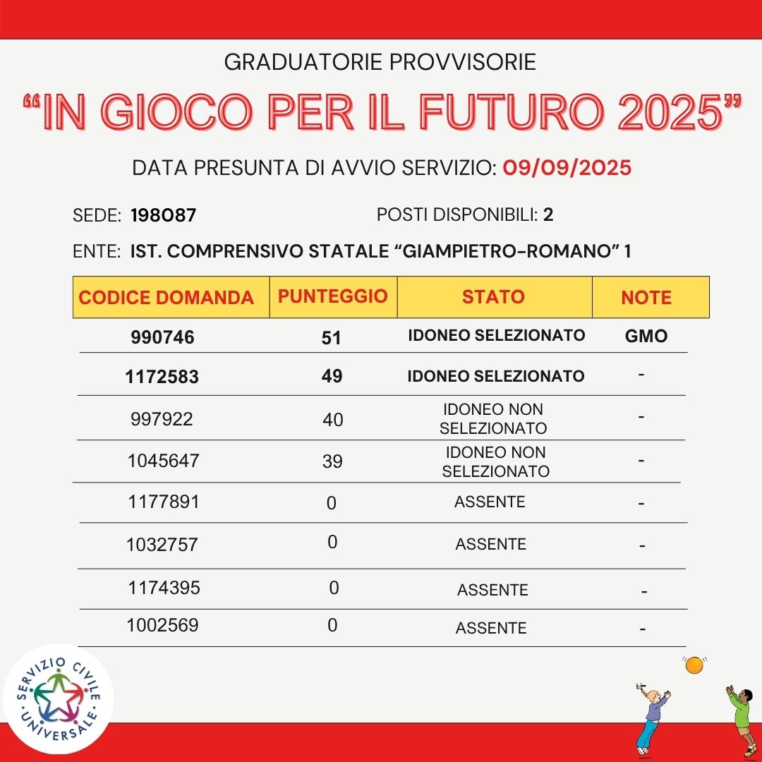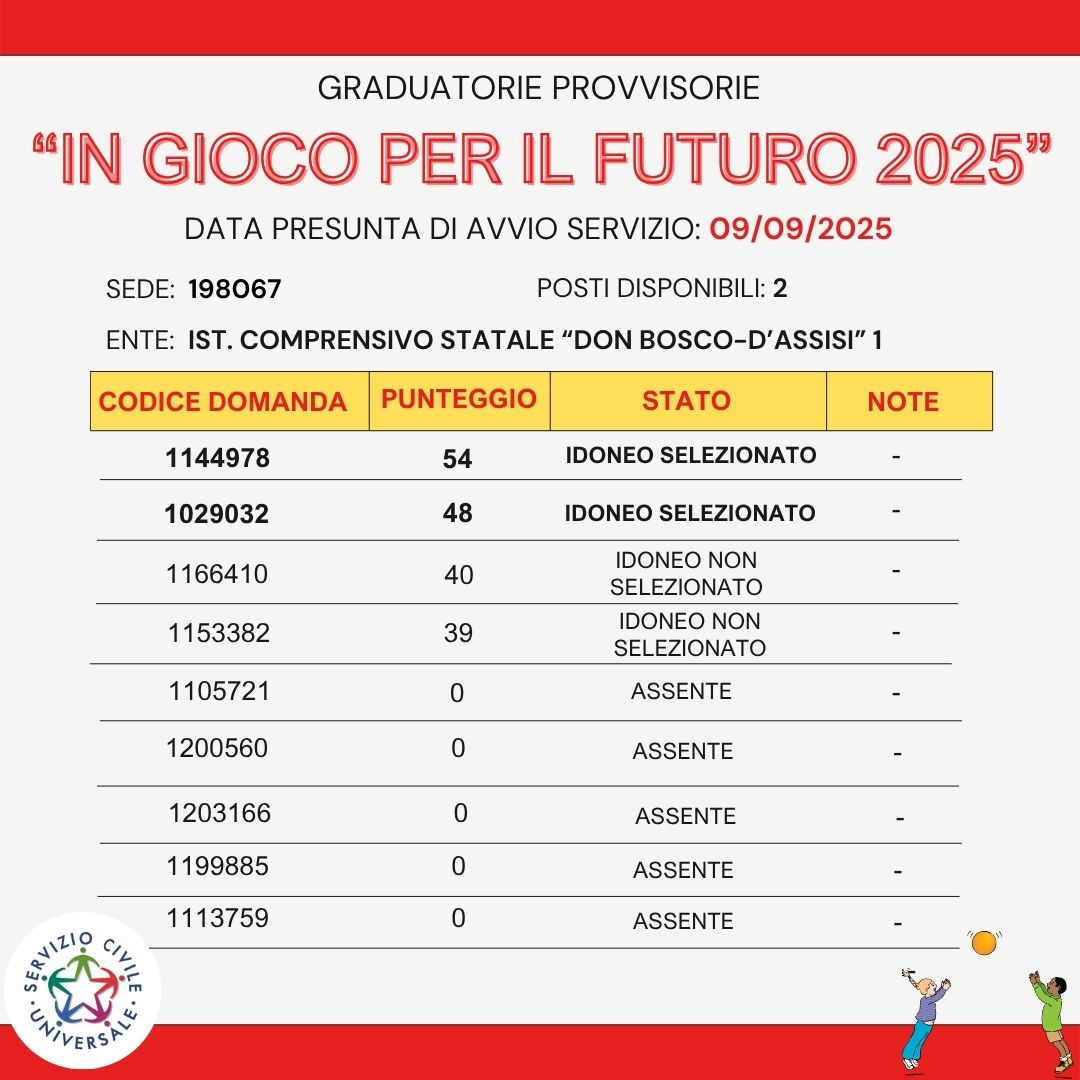 L'obiettivo principale dell'assistenza ai bambini attraverso il Servizio Civile Universale è promuovere lo sviluppo globale dei bambini, fornendo loro un ambiente sicuro, stimolante e affettuoso in cui crescere e imparare. Allo stesso tempo, i giovani volontari hanno l'opportunità di sviluppare competenze sociali, relazionali e organizzative, oltre a contribuire in modo significativo alla società e alla loro crescita personale.